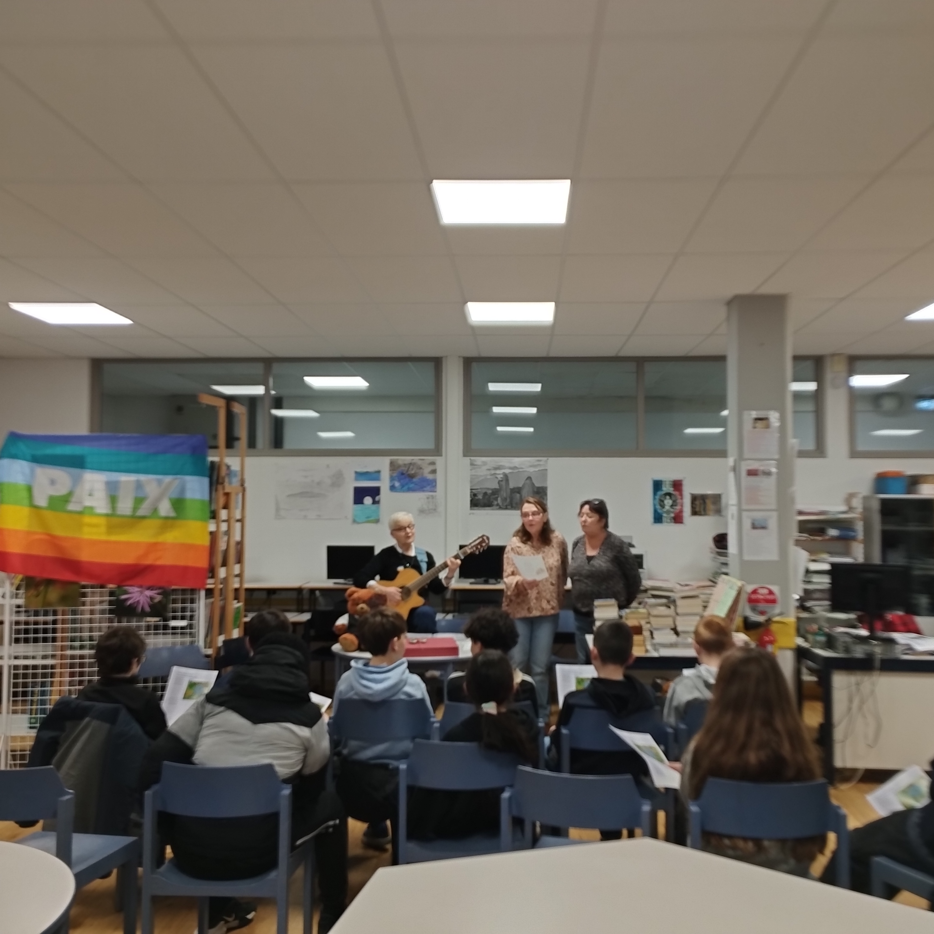 Yuna la libraire de Dialogues au CDI du collège Mendès France pour lancer le (…)